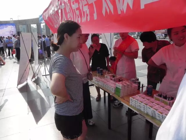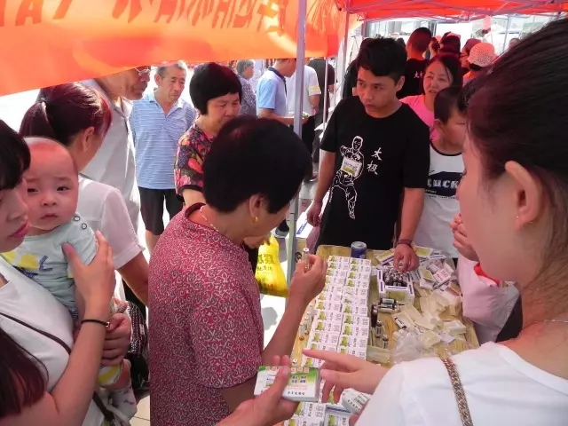 圖為:市民在現(xiàn)場免費(fèi)品嘗山西同仁康大藥房提供的太極藿香正氣口服液