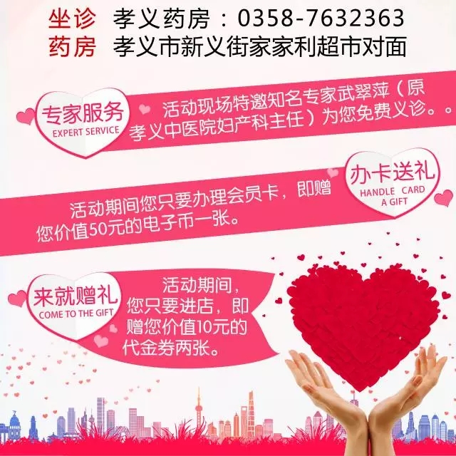 因此,山西同仁康大藥房7月26日-28日在孝義藥房特邀孝義知名專家開(kāi)展“關(guān)愛(ài)健康 服務(wù)百姓”公益活動(dòng),讓愛(ài)的光芒照耀在每一個(gè)人的臉上,讓愛(ài)的溫暖融入每一個(gè)人的胸懷,讓愛(ài)的力量戰(zhàn)勝一切病魔。