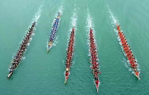 龍舟一詞,***早見(jiàn)于先秦古書(shū)《穆天子傳》卷五:天子乘鳥(niǎo)舟、龍舟浮于大沼。預(yù)《九歌·湘君》中:駕飛龍今北征,邅吾道兮洞庭,石瀨淺淺,飛龍兮翩翩,學(xué)者們也認(rèn)為飛龍即龍舟。